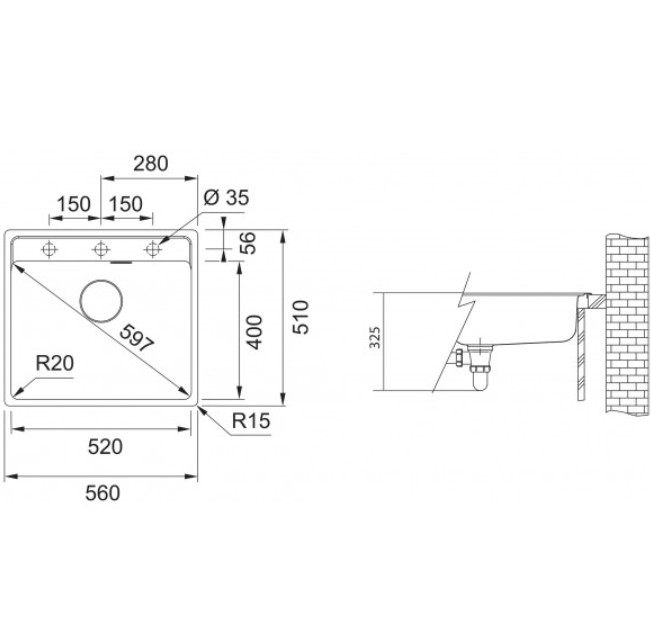 Rozměr dřezu: 560 x 510 mm
