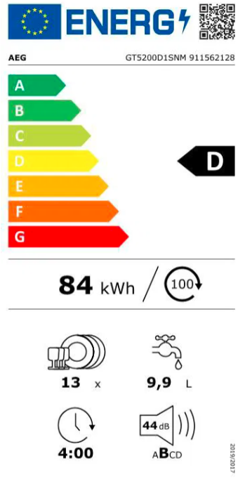 Energetická třída D Spotřeba energie (program ECO) 76 kWh/100 c. Kapacita sad nádobí 13 × Doba trvání (program ECO) 4 h (240 min) Spotřeba vody na cyklus (program ECO) 11 l En ...Více informací