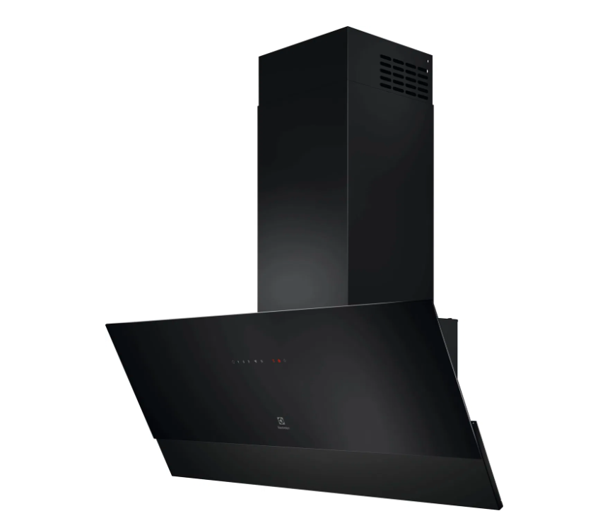 Digestoř - s recirkulací i odtahem, komínová, pevná, na zeď, šířka 89,8 cm, energetická třída C, hlučnost 66 dB, 4stupňový výkon 460 m³/h, zpětná klapka a ukazatel nasycení filtru, LED osvětlení, dotykové ovládání, Hob2Hood, boost a propojení desky s digestoří, uhlíkový a tukový filtr, materiál kov, vhodná do velké kuchyně (do 30 m²), umístění vývodu z vrchu, výška vývodu 86,8 - 127,8 cm, průměr horního vývodu 15 cm, černá barva, hmotnost 14 kg
