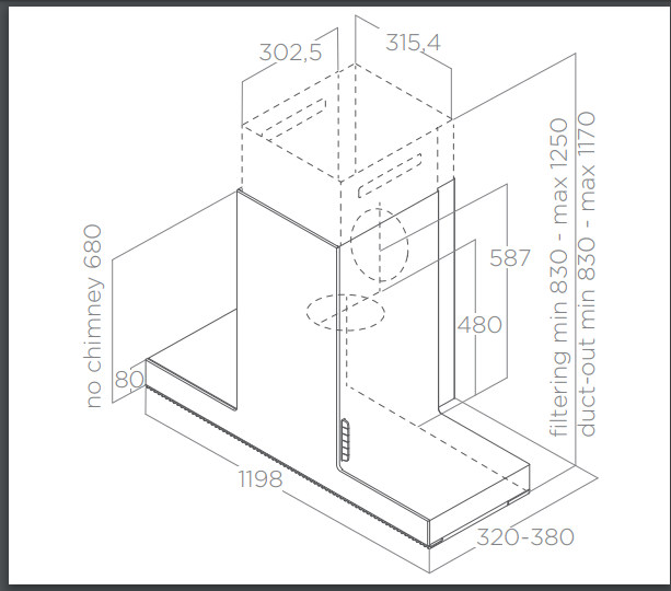 Odsavač par (digestoř) ELICA HAIKU je možné doplnit o montážní přípravek, který umožní plynule nastavit hloubku odsavače od 32 cm do 38 cm.