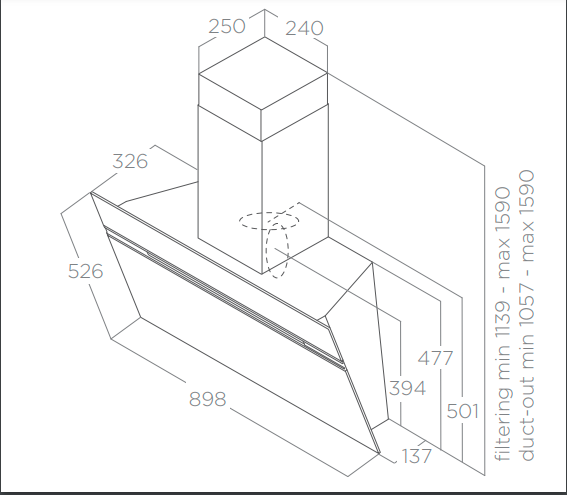 ELICA STRIPE URBAN   je komínový odsavač par vyroben z lakovaného kovu s efektem litiny. Odsavač par (digestoř) nabízí velký výkon od 288-603 m3/h a v intenzivním výkonu dokonce 757 m3/h a nízkou hlučností 50-69 db(A).  BACK ASPIRATION  -  Modely vybavené touto výhodou mají výstup vzduchu umístěn jak na horní, tak i zadní straně odsavače par. Klasický výstup se používá jak v režimu recirkulace, tak i odtahu, s vysunutým komínem. Inovativní zadní odtah umožňuje, aby odsavač par pracoval v režimu odtahu, připojen v zadní části odsavače par na potrubí odpadního vzduchu, které je již vyvedeno zdí, na níž bude nainstalován vlastní odsavač par. Samozřejmostí je signalizace nutnosti čištění tukových filtrů.