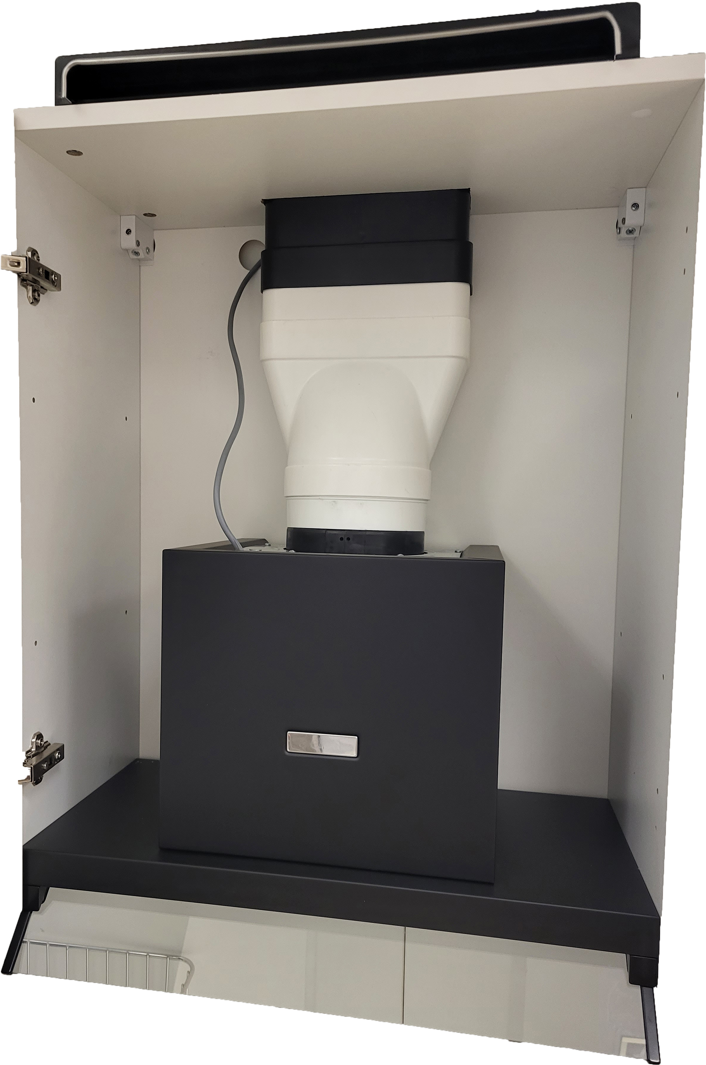 Minimální výška horní skříně musí činit 720 mm a více (při přípravě projektu je nutno brát v potaz součet výšky potrubních elementů ve skříni a konstrukční výšku odsavače). Celková výška sady potrubních elementů, instalovaných uvnitř skříňky je 360 mm.