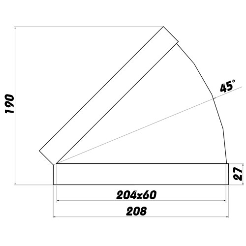Ploché horizontální koleno 45° 204 x 60 mm