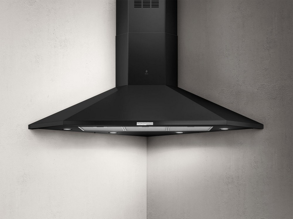 ELICA ACUTA je rohový odsavač par (digestoř) z černého lakovaného kovu. Odsavač par s výkonem 272-515 m3/h a v intenzivním výkonu až 625 m3/h, mile překvapí hlučností pouze 46-65 db(A). Samozřejmostí je signalizace nutnosti čištění tukových filtrů.