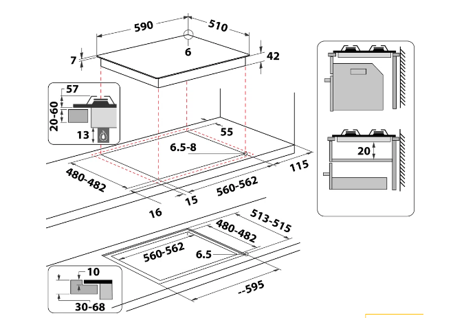 | Šířka pro vestavbu cm | 56 |