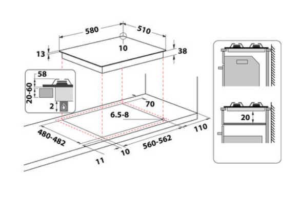 | Šířka pro vestavbu cm | 56 |