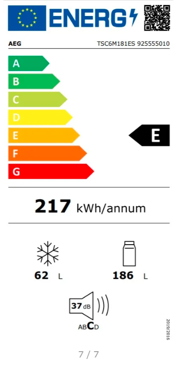 Klimatická třída SN,N,ST,T Typ modelu Vestavný model Energetická třída E Roční spotřeba energie 217,0000000000 kWh/annum Objem (chlazený prostor) 186 l Energetické parametry l ...Více informací