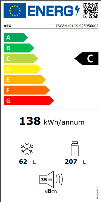 Roční spotřeba energie (v kWh/rok): 138