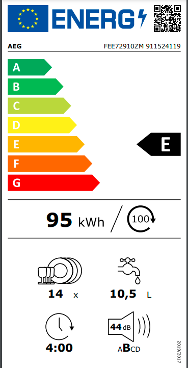 Kapacita mytí: 14: Podle normy IEC pro sadu nádobí. Jednou sadou nádobí je podle této normy: talíř, hluboký talíř, dezertní talíř, sklenice, čajový šálek s podšálkem, nůž, vidlička, polévková lžíce, dezertní lžíce a lžička.