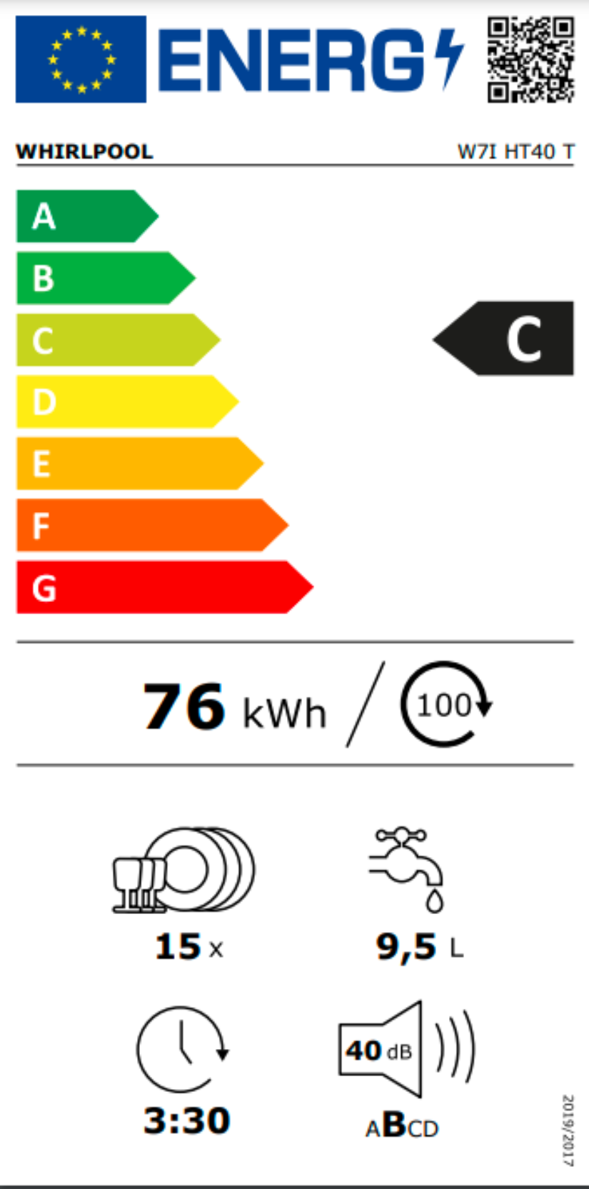 Spotřeba energie na 100 cyklů Eco Program (EU 2017/1369): 76