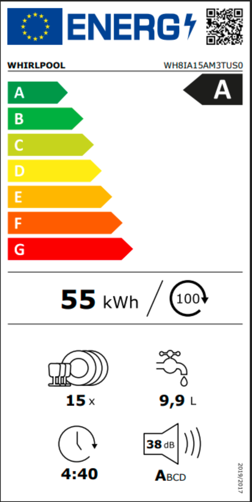Spotřeba energie na 100 cyklů Eco Program (EU 2017/1369): 55