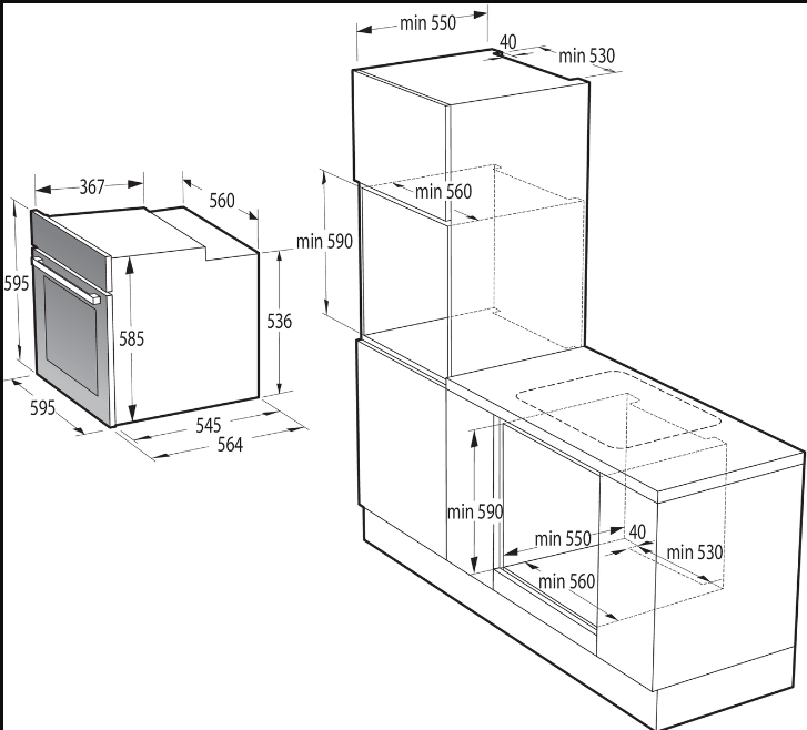 | Výška pro vestavbu cm | 59 |