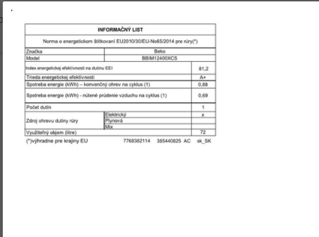 | Objem trouby L | 72 |