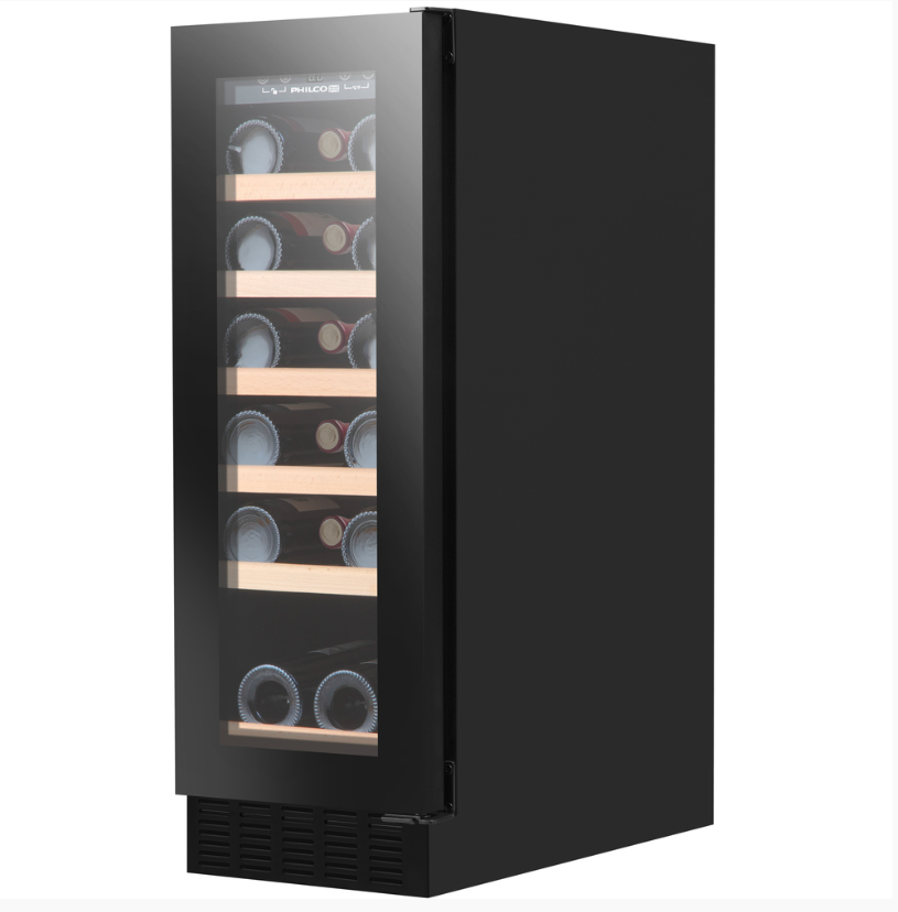 Jednozónová, kompresorová, senzorově ovládaná, vinotéka Philco PW 19 GFB na 19 lahví s kluznými výsuvnými policemi s bukového dřeva. Vinotéka je opatřena trojitým sklem dveří s UV ochranou a speciálně uloženým kompresorem pro snížení vibrací, topením pro vyrovnávání kolísání okolních teplot a displejem. S odnímatelným soklem můžete vinotéku dokonce vestavět či podstavět. Model PW 19 GFB má funkci Winter Care beznámrazový systém, který zabraňuje jakékoliv námraze.